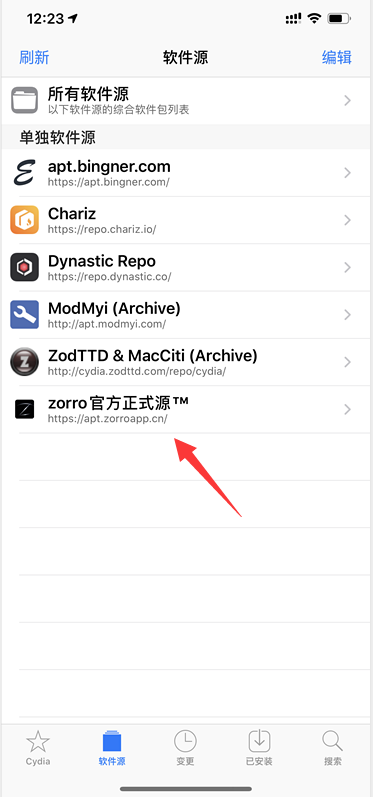 7、找到http://apt.zorroapp.cn的软件源,点击进入;